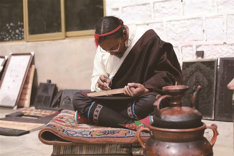 在传承技艺的过程中,斯曲也面临着不少挑战。教徒弟时最大的困难就是让他们静下心来,因为这门手艺需要从小学起,不仅要学习拿工具,还要学习认字和雕刻。“以前光是学习雕刻文字,起码要9个月时间,现在的孩子都很聪明,两年基本就能掌握雕刻技艺。”斯曲欣慰地说。