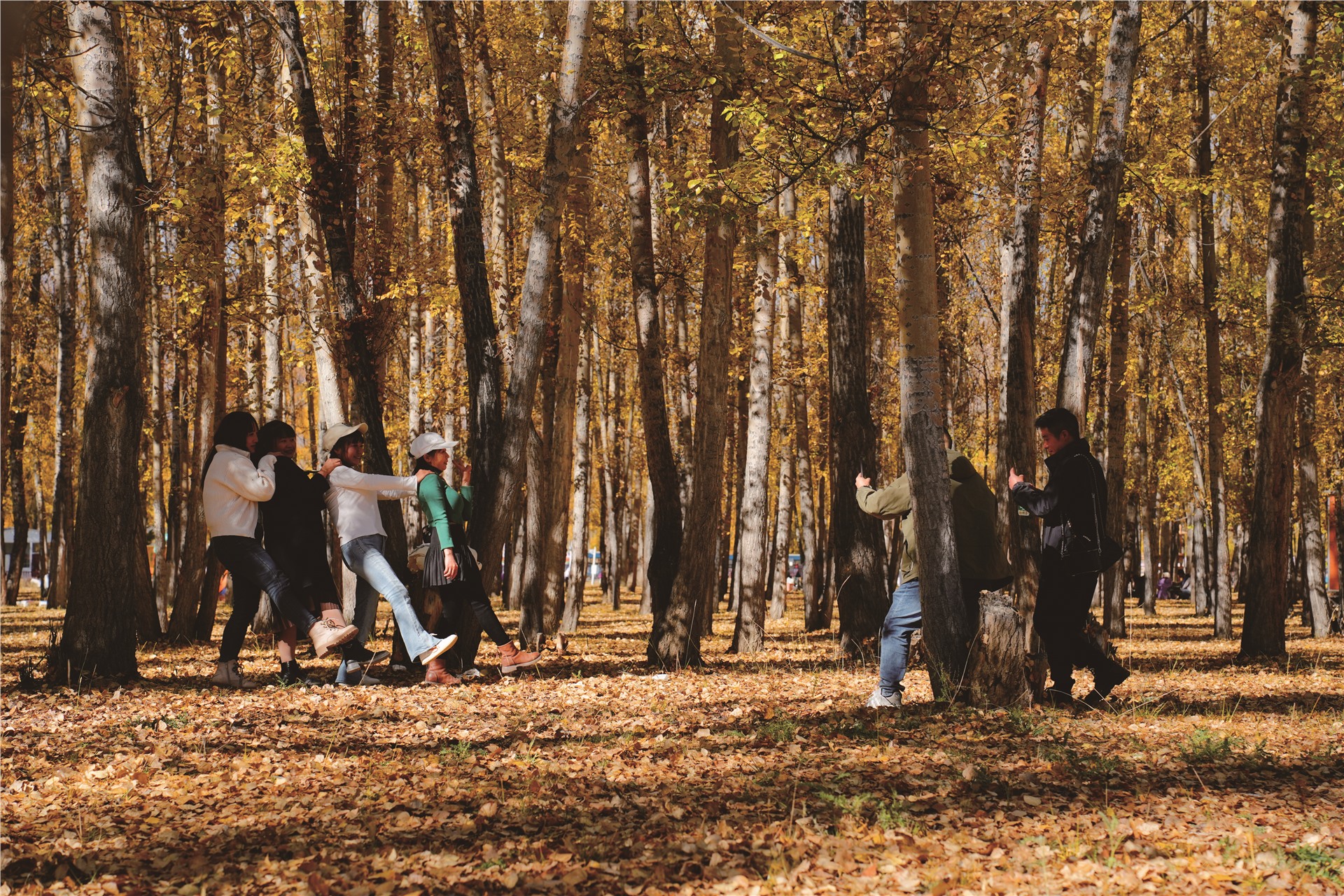 金秋十月,拉萨神秘树林披上“黄金甲”,游客漫步其间,尽享如画秋景。 本报记者 顿珠 摄