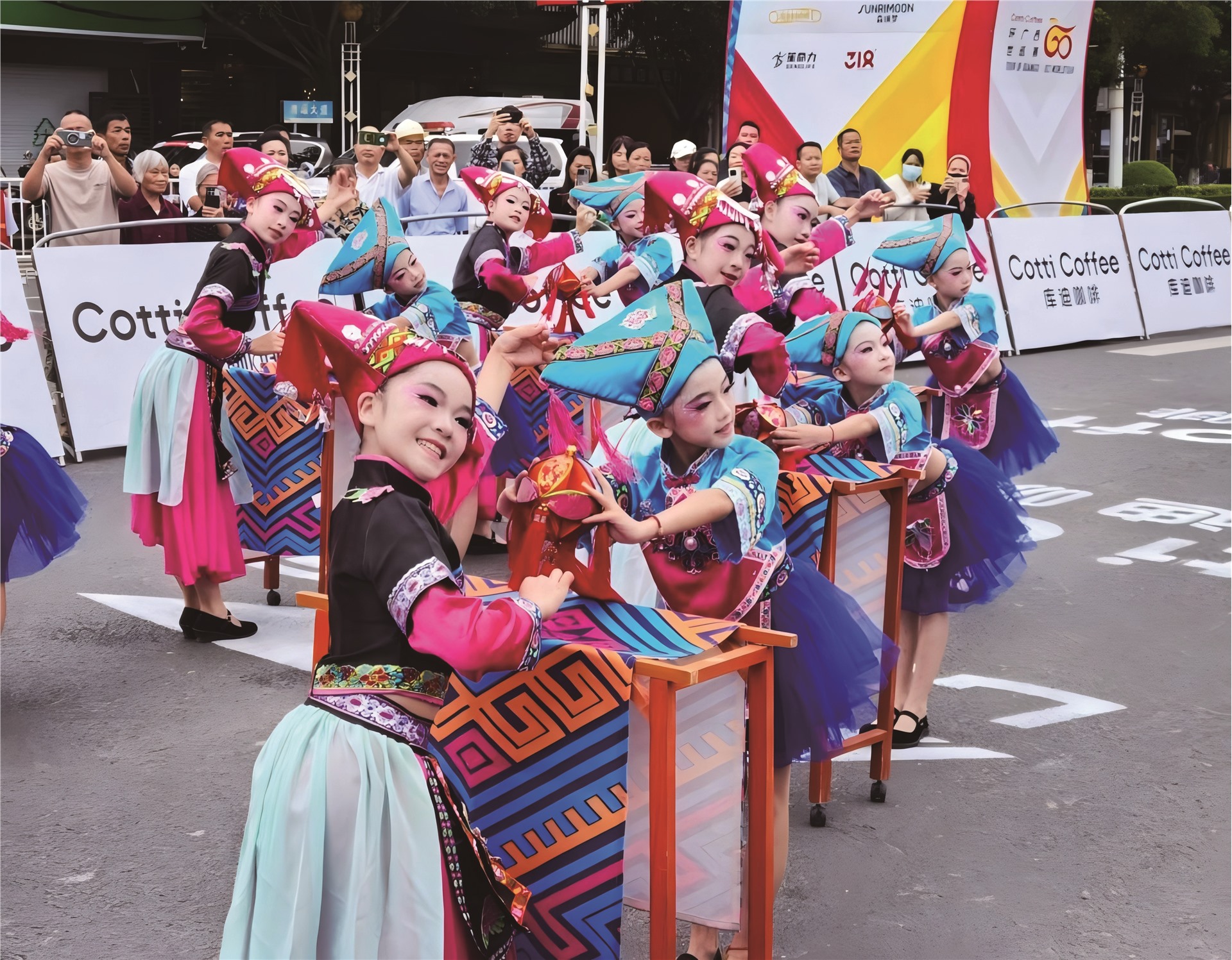 文化骑行之旅仍在延续,在即将到来的宜州—弄拉赛段争夺中,当地已在赛道路段布置多个非遗展演点,壮族会鼓、打扁担、草凳龙等将轮番上演。