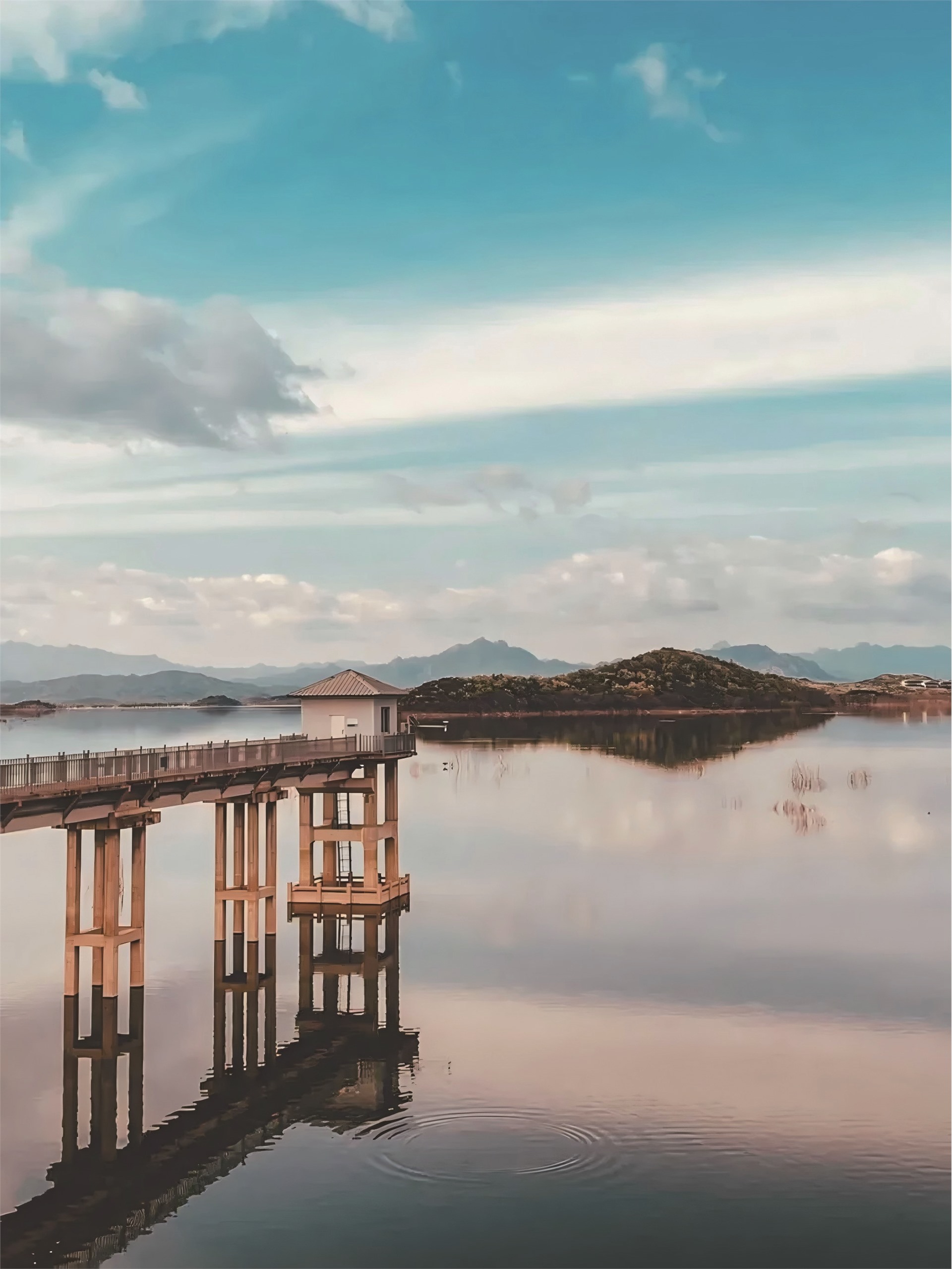 天晴的时候,水库一望无际、平静无澜,湖水蔚蓝清澈,倒映着清透的蓝天。车外的温度是冷冽的,但人在车内却可以享受徐徐吹来的暖风和冬日不灼热的阳光。