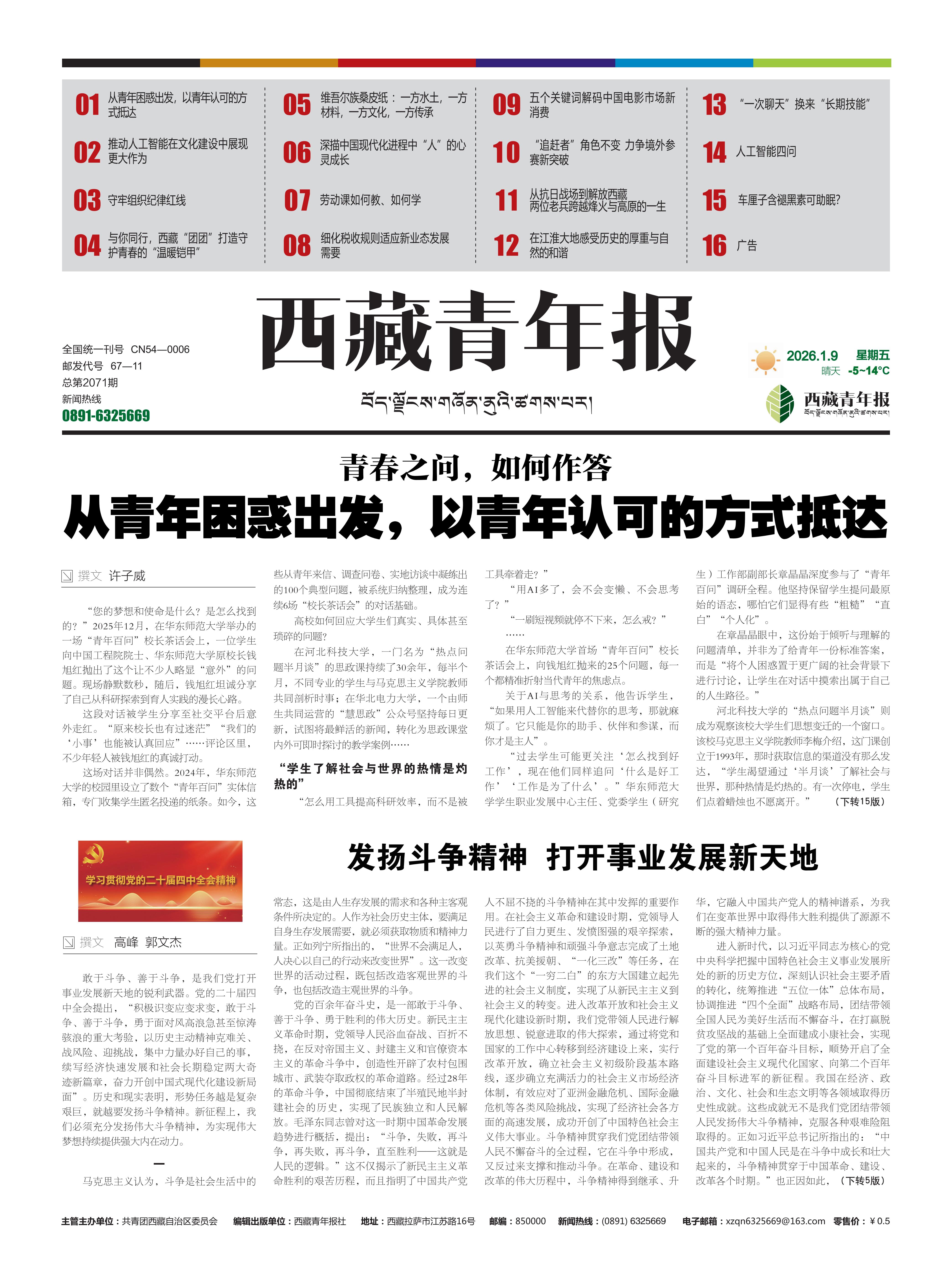 西藏青年报时事 从青年困惑出发,以青年认可的方式抵达 发扬斗争精神  打开事业发展新天地