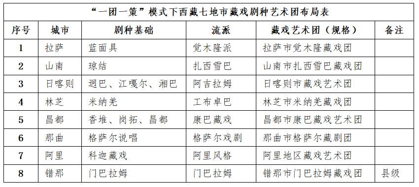 戏剧振兴三年行动计划明确提出,落实《深化国有院团改革意见》[3],这对激活西藏自治区藏剧团的发展动力具有至关重要的指导作用,将进一步拓展和升级藏剧团在藏戏保护与发展中的职责定位,引领全区乃至全国藏戏艺术的健康发展与繁荣复兴;全面推行“一团一策”发展模式,这为全区七个地市发展具有地方特色的藏戏剧种和流派提供了政策先导,将以国营模式组建地方剧种藏戏团,将有望实现西藏七地市均有市级藏戏艺术团(如表1);加大对基层院团的扶持力度,支持民间藏戏队提升演职人员的文化素养和专业技能;将每年组织开展全区民间藏戏队演职人员职业技能培训;制定西藏藏戏艺术管理人才培养计划,以此提升民间藏戏队管理与运营人员的戏班运营管理能力,持续夯实民间戏班保护和传承藏戏艺术的基础能力。