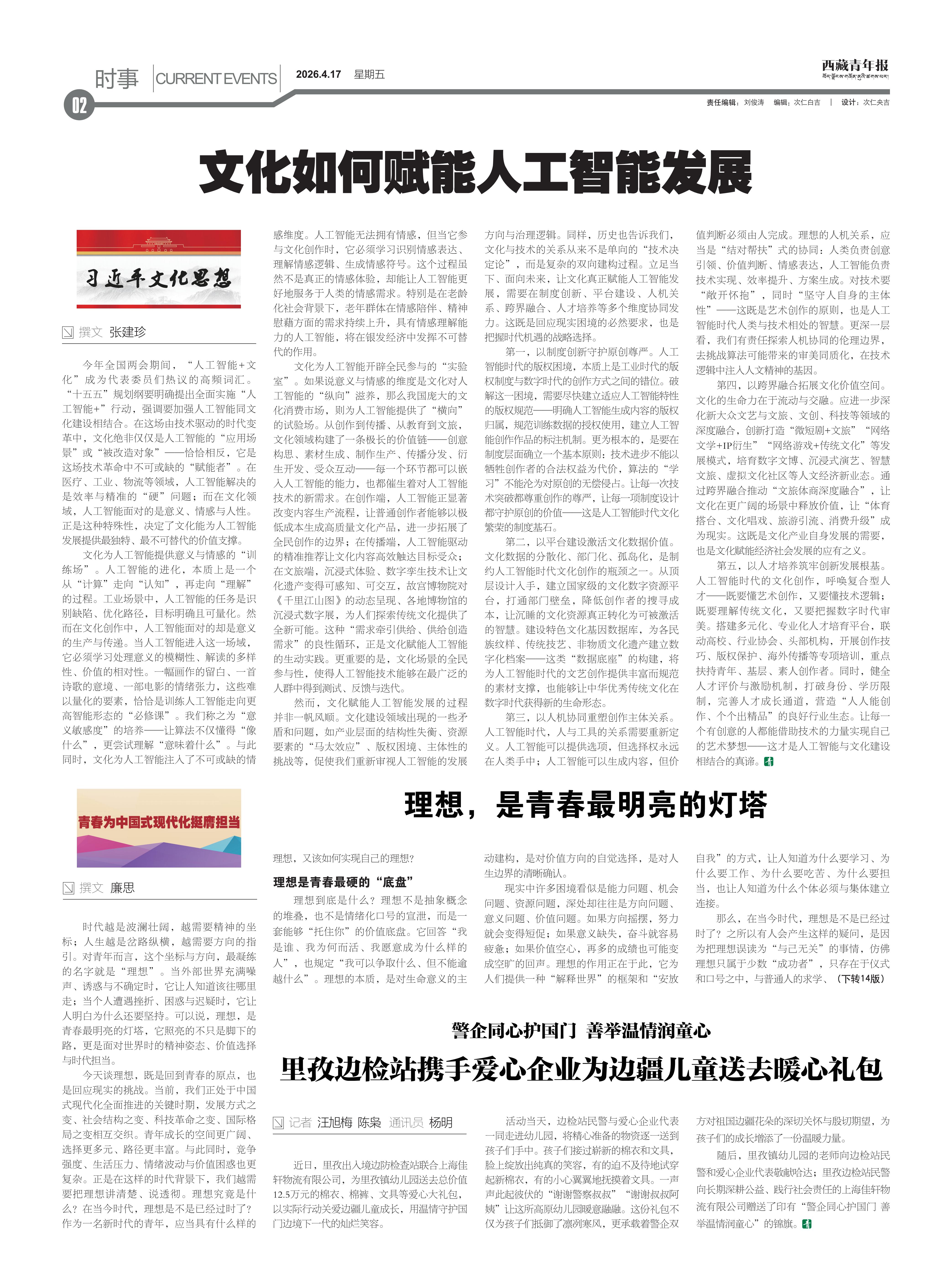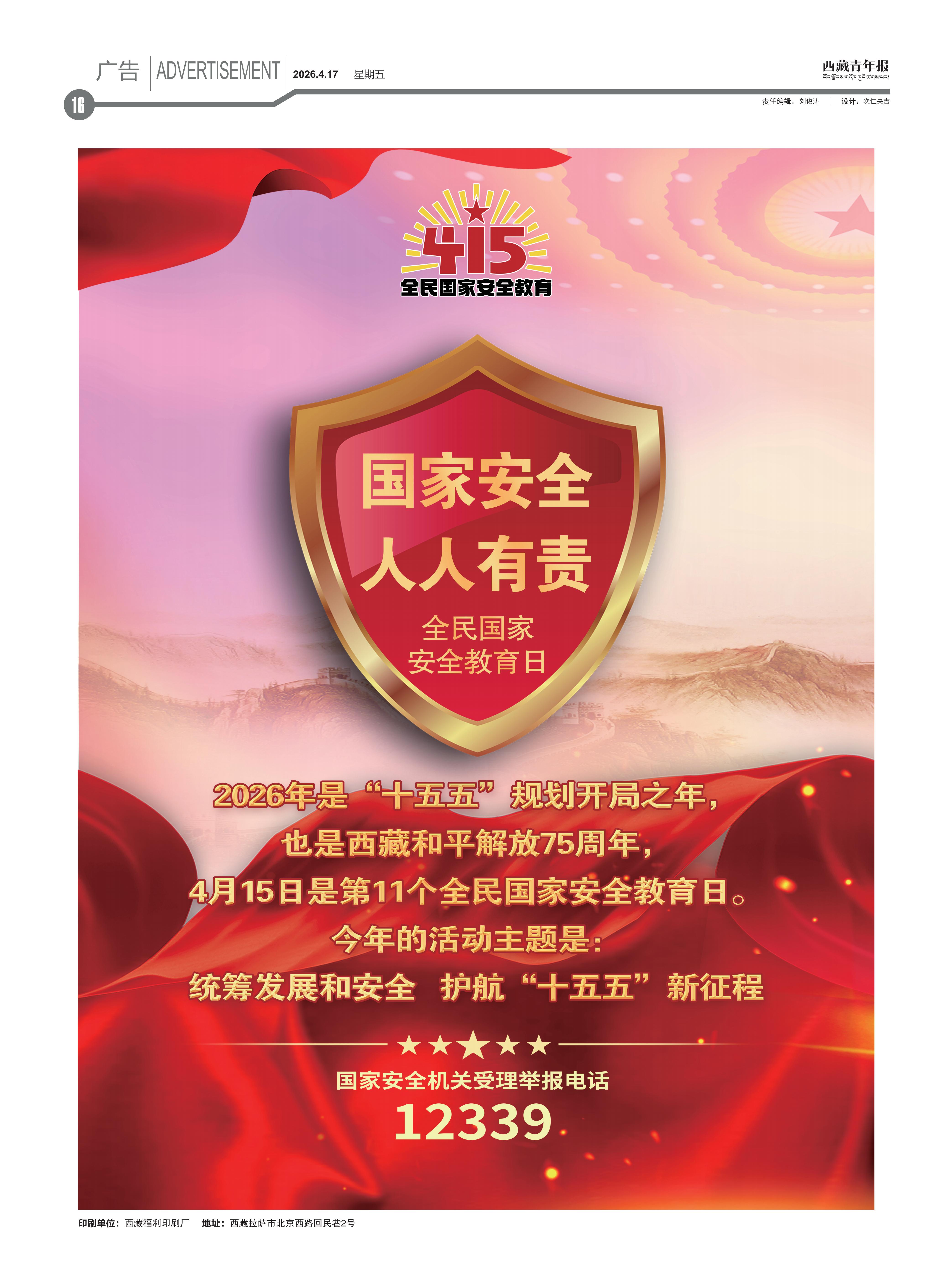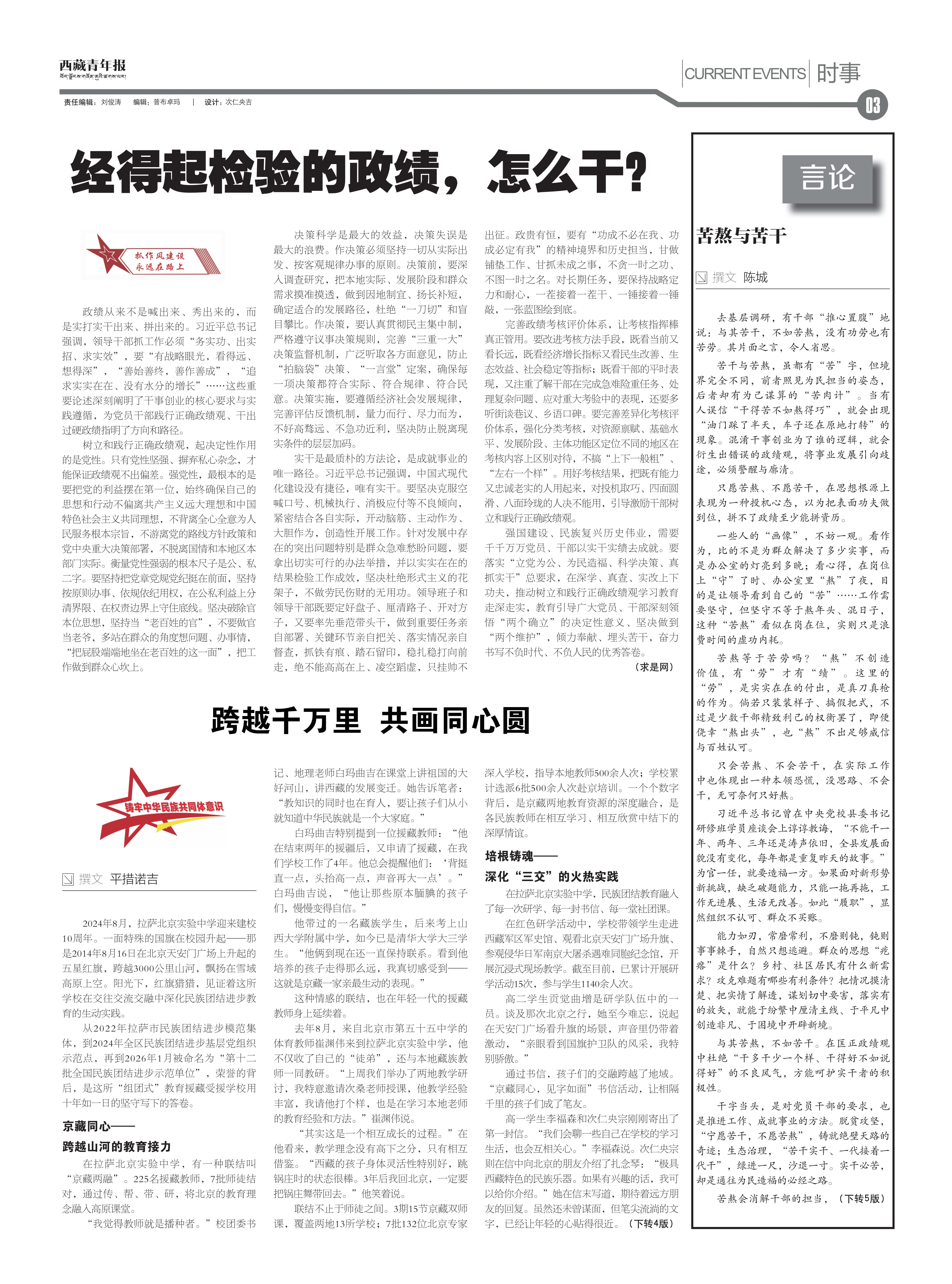 西藏青年报社出版  |  国内统一刊号:CN54—0006  |  邮发代号:67—11