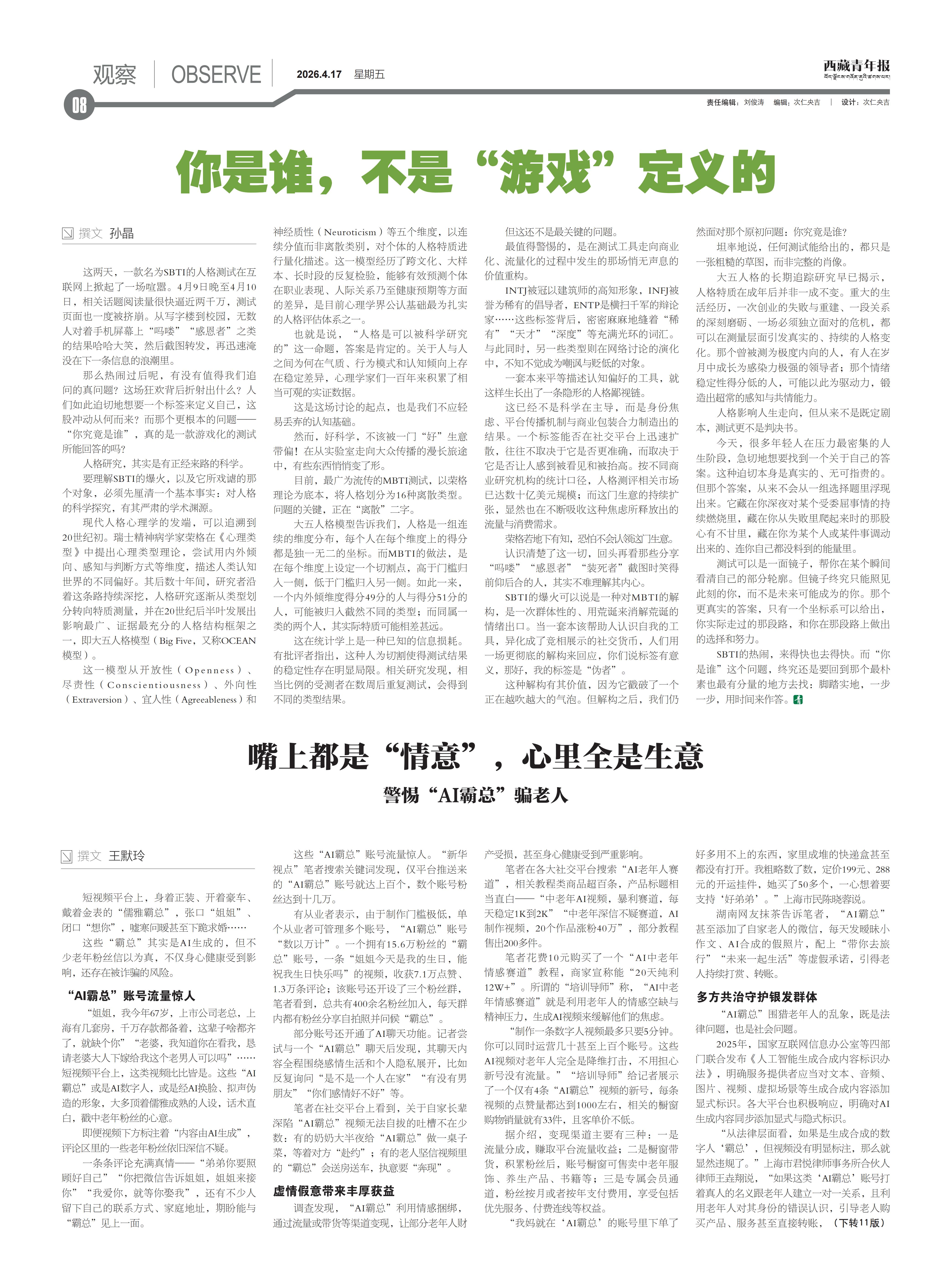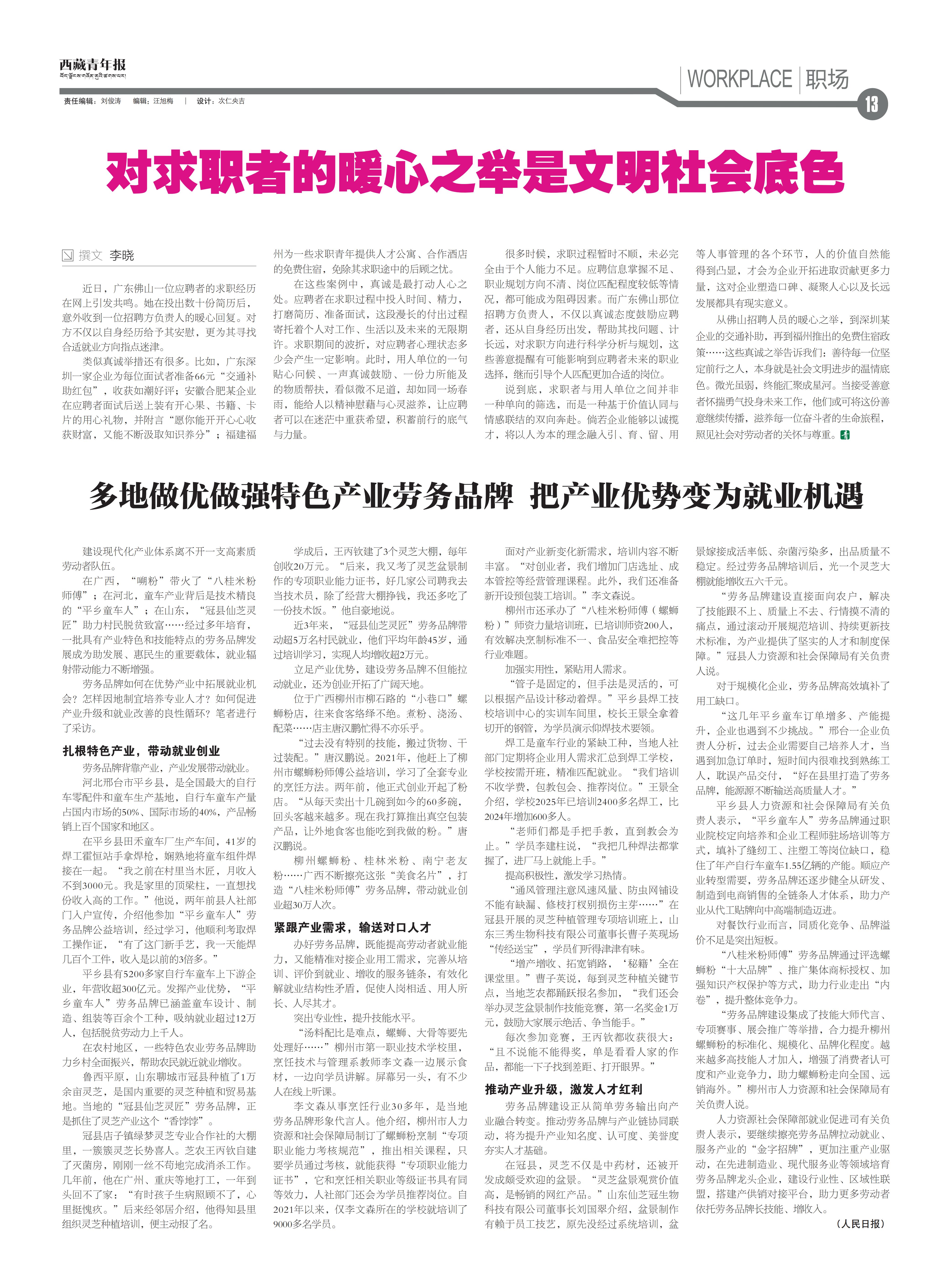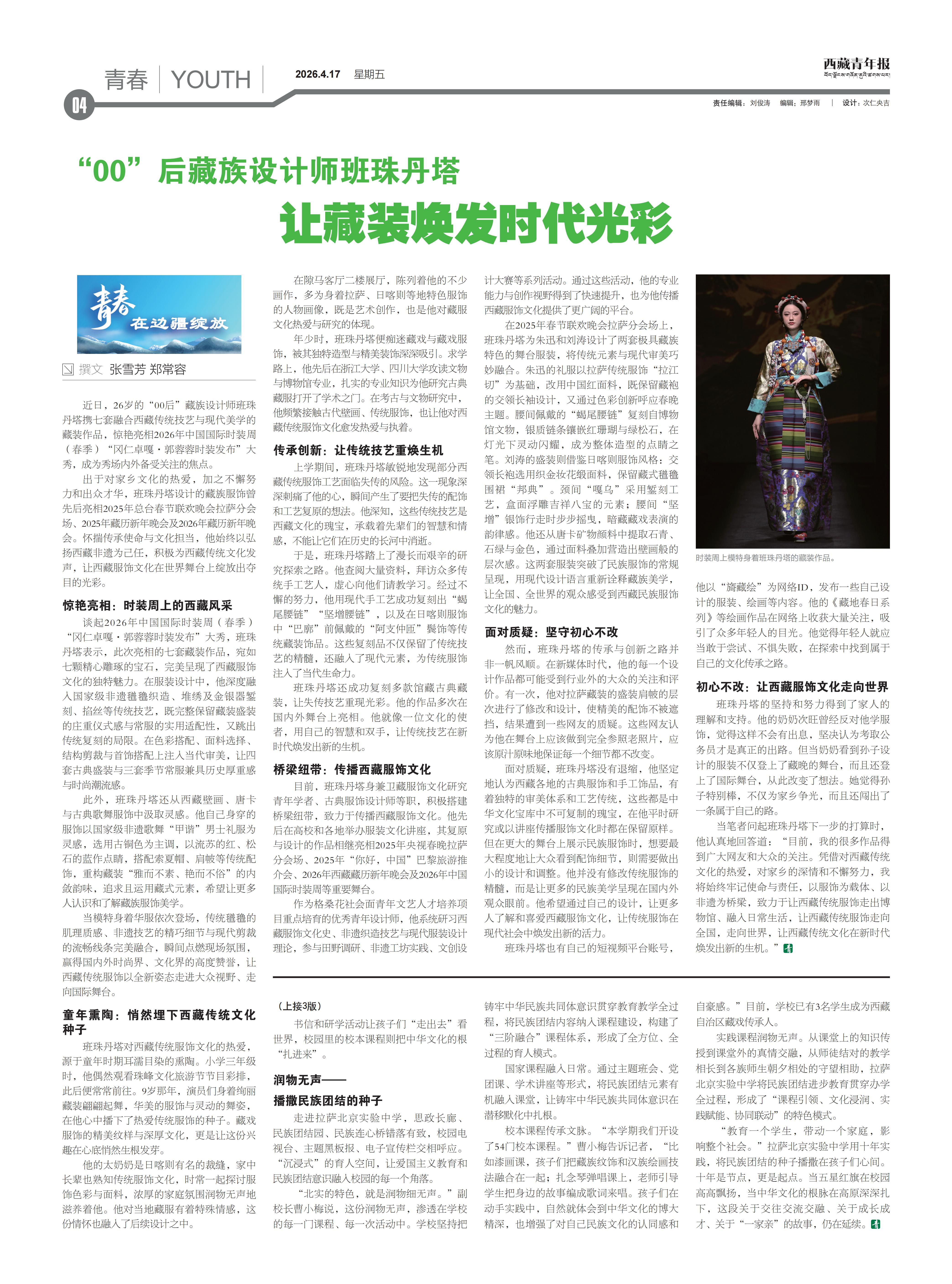 西藏青年报社出版  |  国内统一刊号:CN54—0006  |  邮发代号:67—11