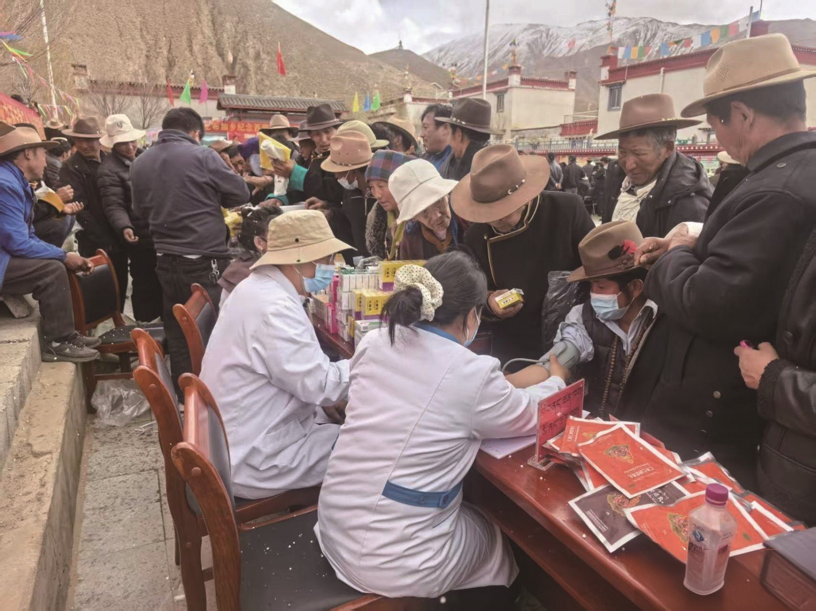 援藏期间,医疗队常态化开展“免费义诊进乡村 便民医疗零距离”主题义诊活动,把优质医疗服务送到群众家门口。每到一处,前来问诊的藏族同胞络绎不绝。量血压、问诊查体、开具处方、免费发放药品……队员们耐心细致,用专业与温度守护每一位患者。